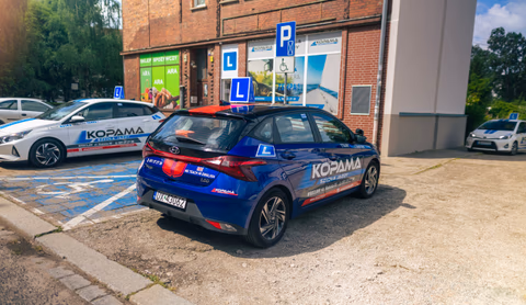 Elegancki i wygodny samochód szkoleniowy KopaMa Wrocław z manualną skrzynią biegów.